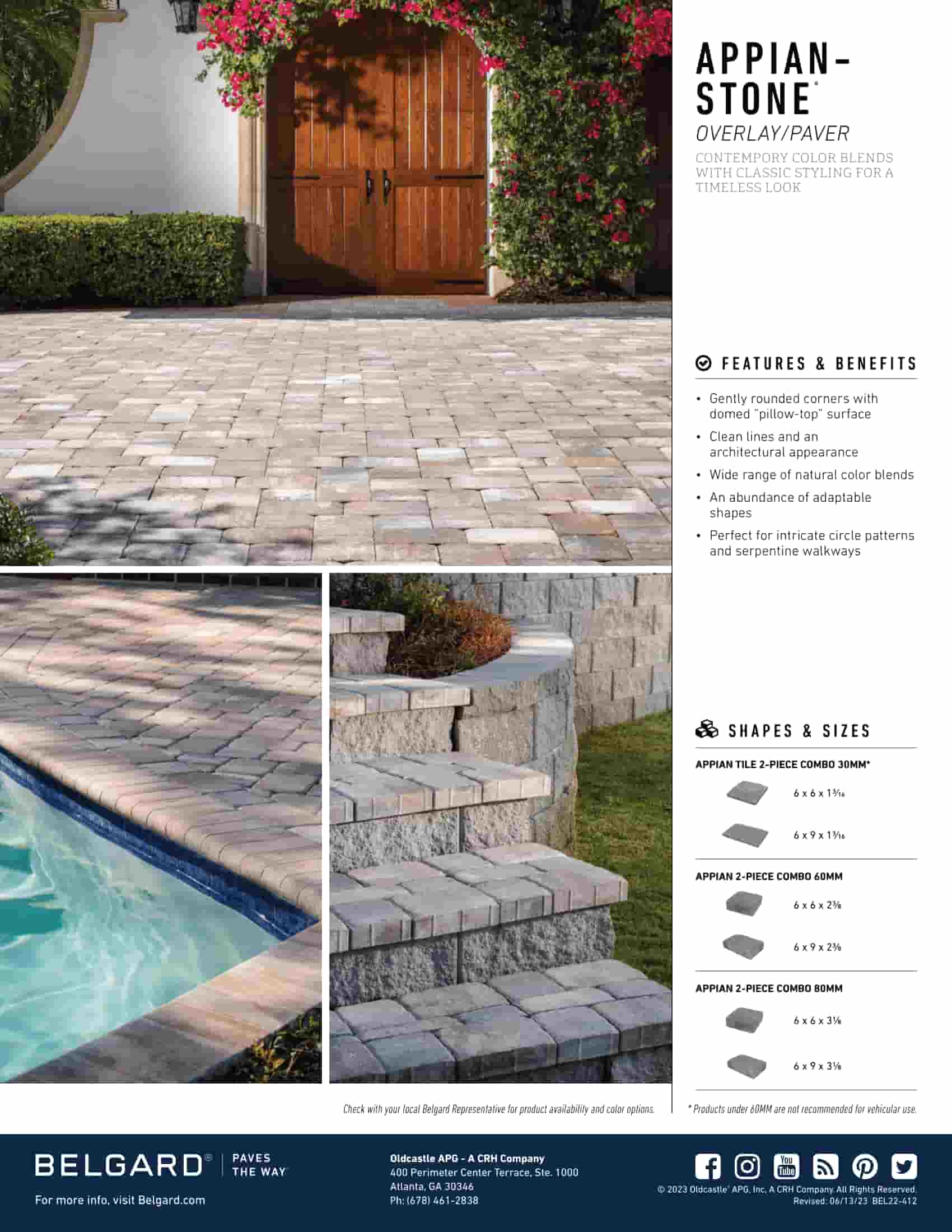 - Appian Stone Overlay – A strong, textured paver perfect for driveways and heavy-use areas