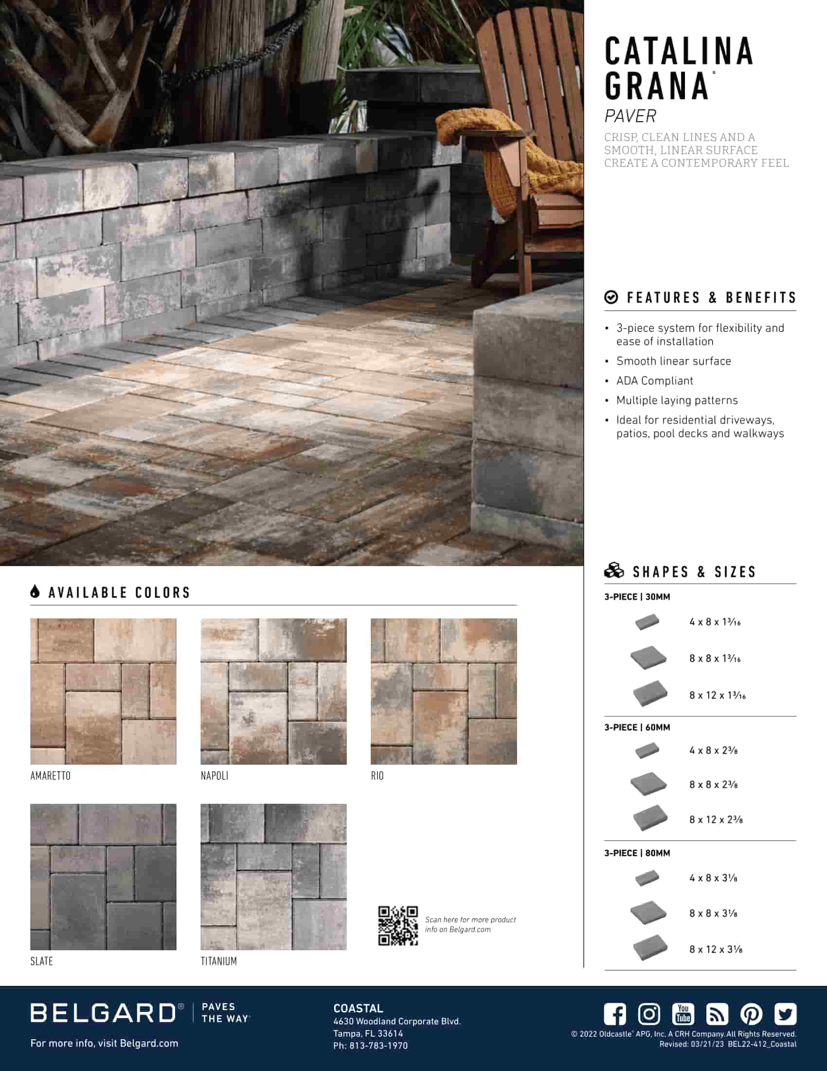 - Catalina Grana – A smooth, modern paver available in a range of blended colors