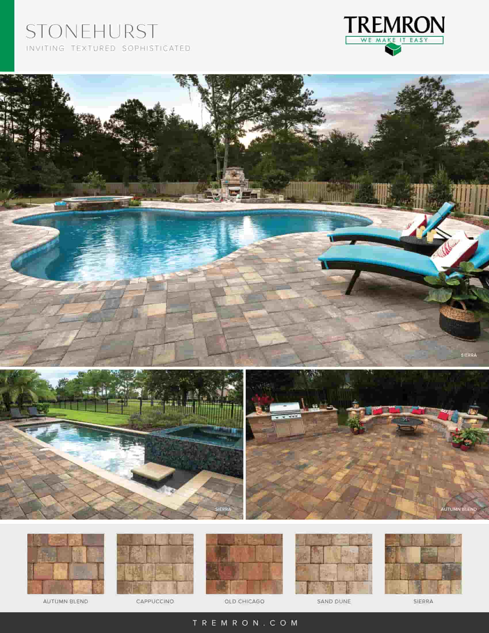 Tremron is known for making pavers that look great and can handle Florida’s heat, humidity, and sudden storms. Their products are tough and built to last, which makes them perfect for high-traffic areas like patios and pool decks.